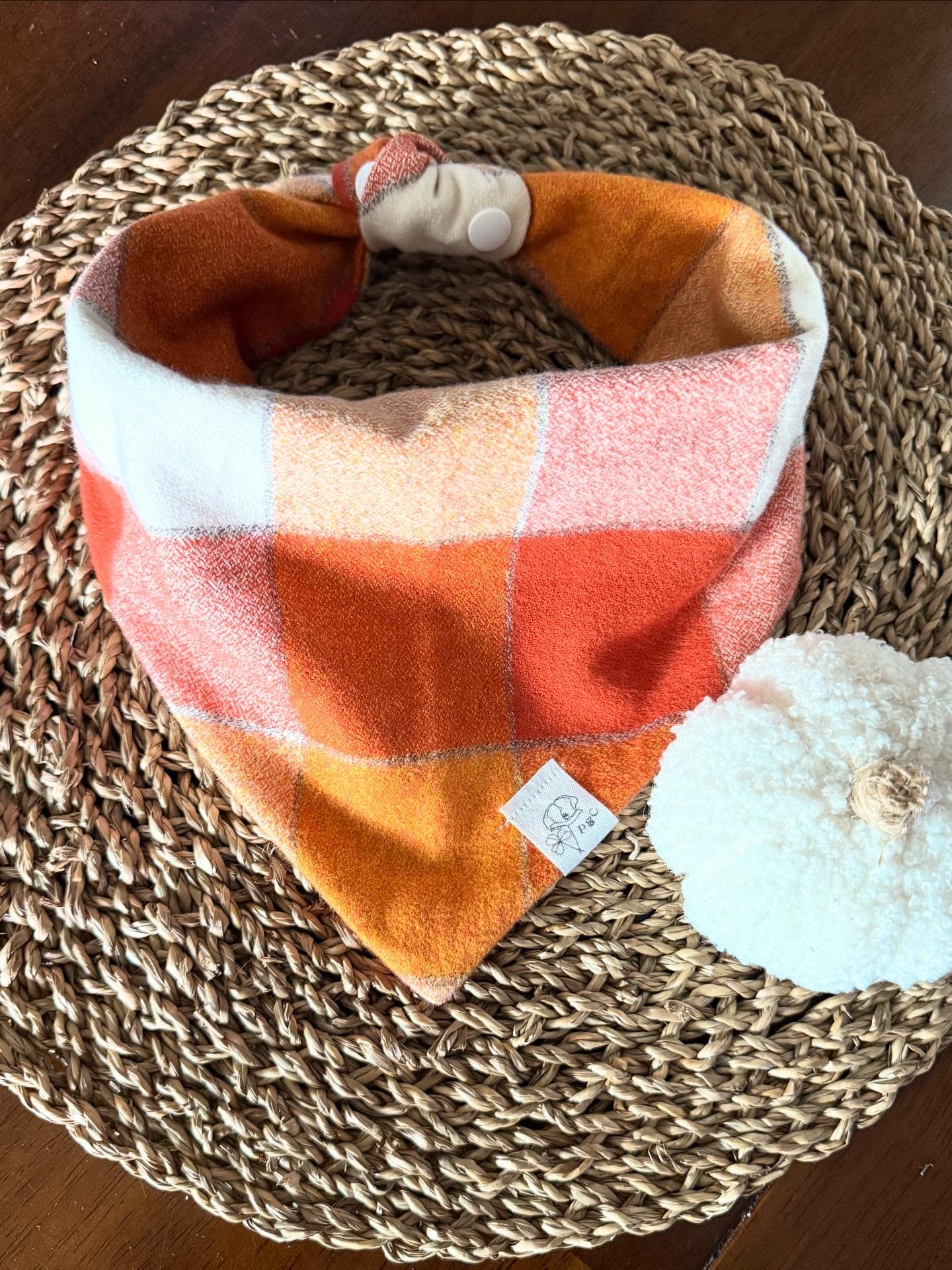 Bring warm autumn vibes to your pup’s wardrobe with The Rusty. This soft, plaid flannel bandana blends burnt orange, golden yellow, and rustic red for the perfect fall look. Handmade with care, it’s cozy enough for crisp morning walks yet durable for everyday adventures.
